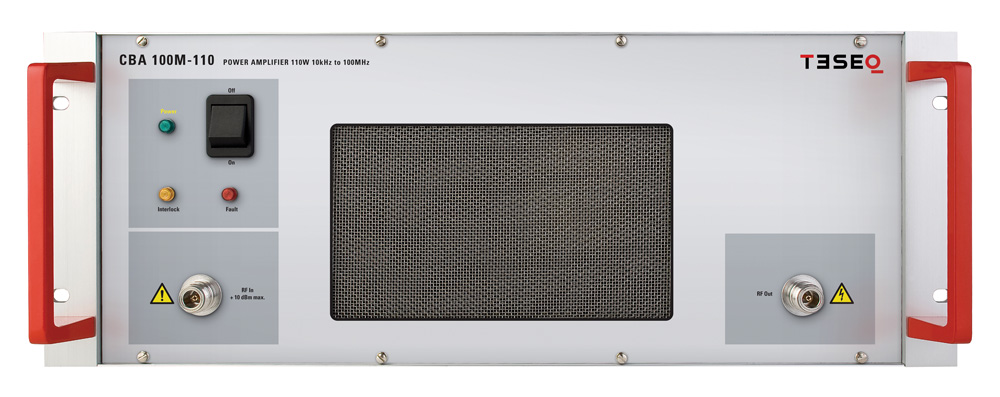 - nízkofrekvenční zesilovač CBA 100M-110 lze použít ve spojení s dalšími zesilovači Teseq k pokrytí celého frekvenčního rozsahu od 10 kHz do 40 GHz s dostatečným překrytím frekvence, které vám umožní optimalizovat úroveň výkonu v každém rozsahu