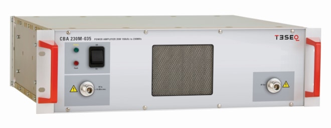 - CBA 230M-035, zesilovač třídy A navržen speciálně pro testování EMC, je ideálně vhodný pro napájení CDN pro testování citlivosti podle IEC 61000-4-6 až do úrovně 10 V emf.