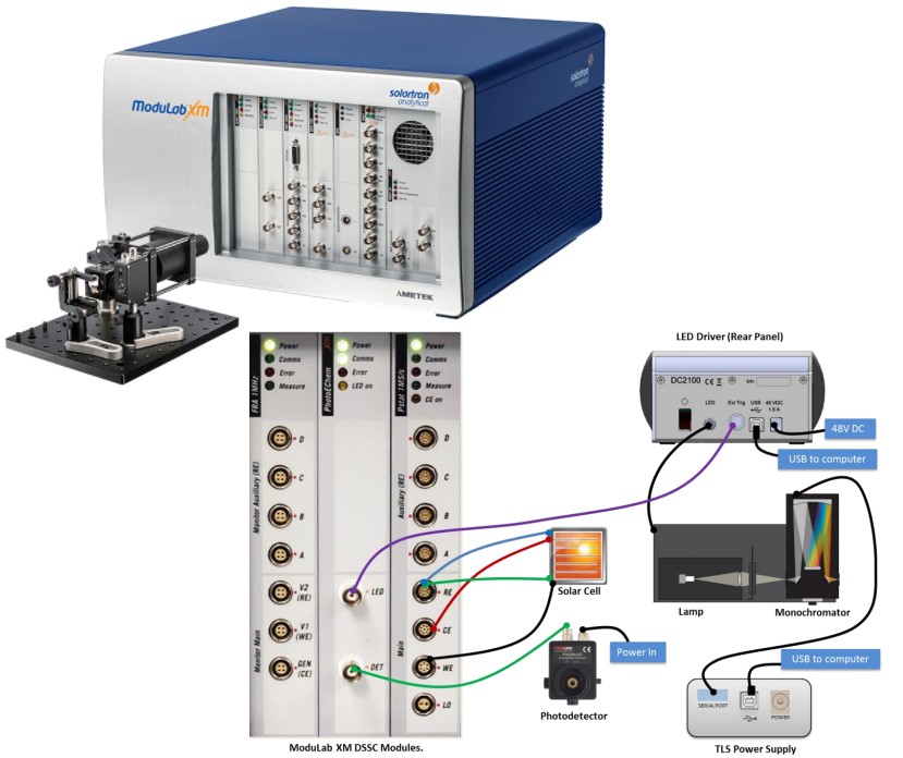 - IPCE (Incident Photon to Current Efficiency) doplňkový modul s rozsahem vlnových délek 350 nm až 1100 nm využívající FRA techniku s vysokým poměrem signál/šum a s potlačením bias