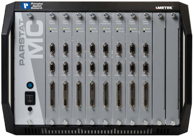- karta PMC-2000A nabízí proudové rozlišení 122 fA na rozsahu ± 4 nA, dva napěťové rozsahy a 6-vodičové zapojení, kdy pomocný kanál lze využít např. pro simultánní DC či EIS měření anod/katod, nebo měření jednoho článku při testování sestavy