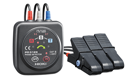 PD3129 je bezkontaktní digitální tester fázového posunu pro kontrolu pořadí fází a detekci fází pod napětím v třífázových sítích. V mnoha třífázových aplikacích se také označuje jako tester fázového posunu nebo indikátor fází. Díky bezkontaktním svorkám umožňuje přístroj provádět měření přímo na izolovaných vodičích bez nutnosti odizolování vodičů nebo odhalení částí pod napětím. Díky tomu je testování rychlejší, bezpečnější a možné i v situacích, kdy by přímý elektrický kontakt normálně vyžadoval vyšší kvalifikaci nebo dodatečná ochranná opatření.