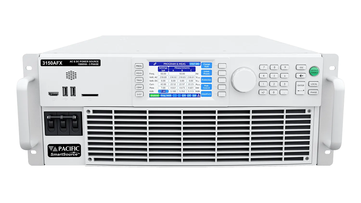 Možnost uspořádání AC výstupu v následujících kombinacích (navíc v DC režimu možnost tří samostatných kanálů):