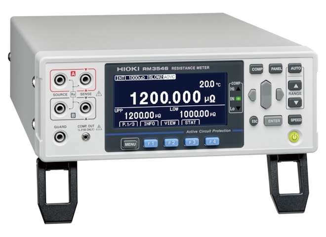 RM3546 nabízí 13 rozsahů odporu od 1 mΩ do 1000 MΩ s maximálním testovacím proudem 1 A. Nejnižší rozsah 1 mΩ poskytuje rozlišení potřebné pro přesné vyhodnocení i minimálních změn odporu ve svařovaných spojích, s rozlišením měření až 1 nΩ a základní přesností ±0,045 % rdg ±0,010 % f.s.. Volitelné interní přepínací karty Z3003 umožňují automatizovaná vícekanálová měření odporu bez nutnosti externího skeneru nebo dalšího řídicího hardwaru.