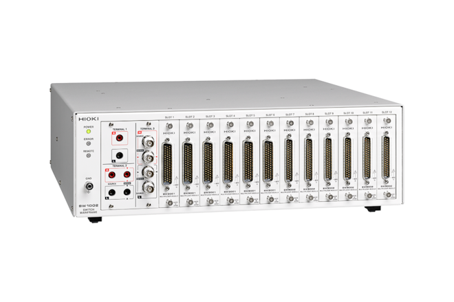 - dvanáct slotů umožňuje sestavu s až 264 kanály (dvouvodičová měření), 132 kanály (čtyřvodičová měření), nebo 72 čtyřvodičovými páry